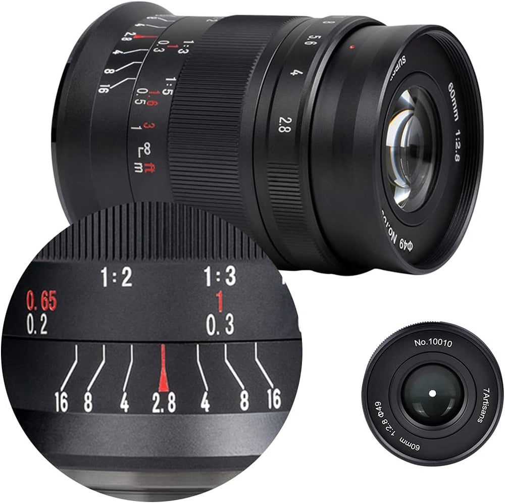 7artisans 60 mm F2.8 Makro APS-C Weitwinkelobjektiv für Sony Emount Kameras wie A7 A7II A7R A7RII A7