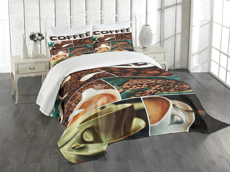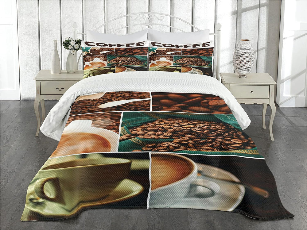 ABAKUHAUS Kaffee Tagesdecke Set, Photo Collage Entspannen Sie Sich Zeit, Set mit Kissenbezügen Wasch