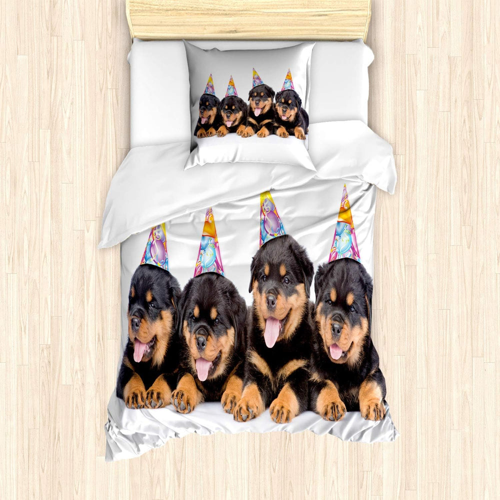 ABAKUHAUS Geburtstag Bettbezug Set für Einzelbetten, Geburtstags-Hunde Kappen, Milbensicher Allergik