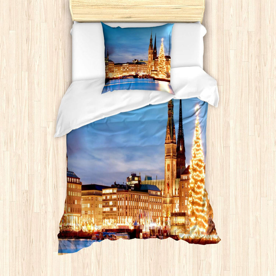 ABAKUHAUS Hamburg Bettbezug Set für Einzelbetten, Hamburg Deutschland Altstadt, Milbensicher Allergi