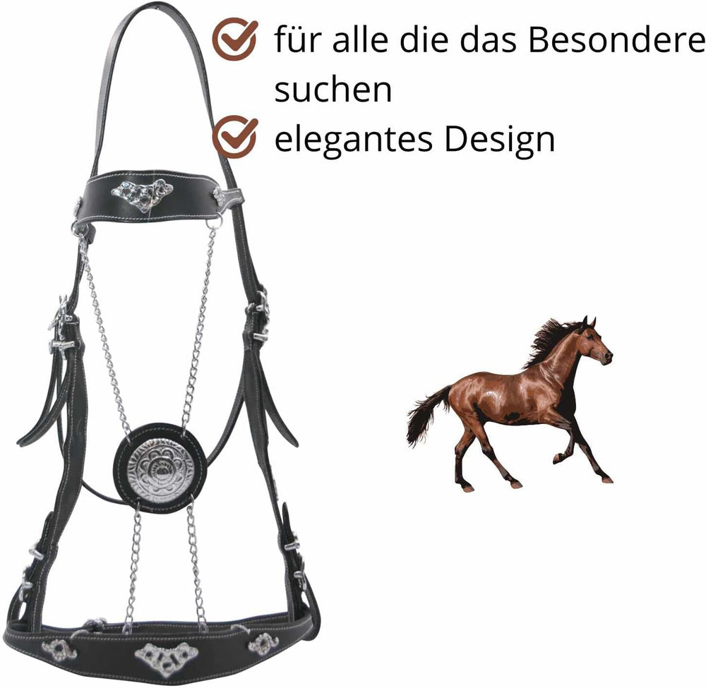 AMKA Portugiesische Trense Prunkzaum Barockzaum Barocktrenseschwarz silberfarbene Beschläge
