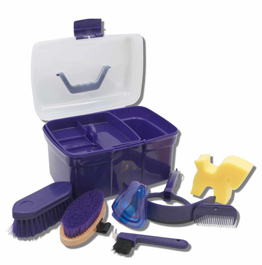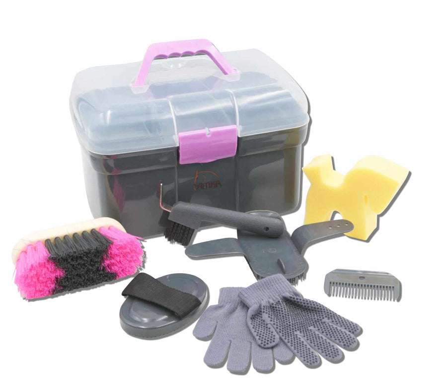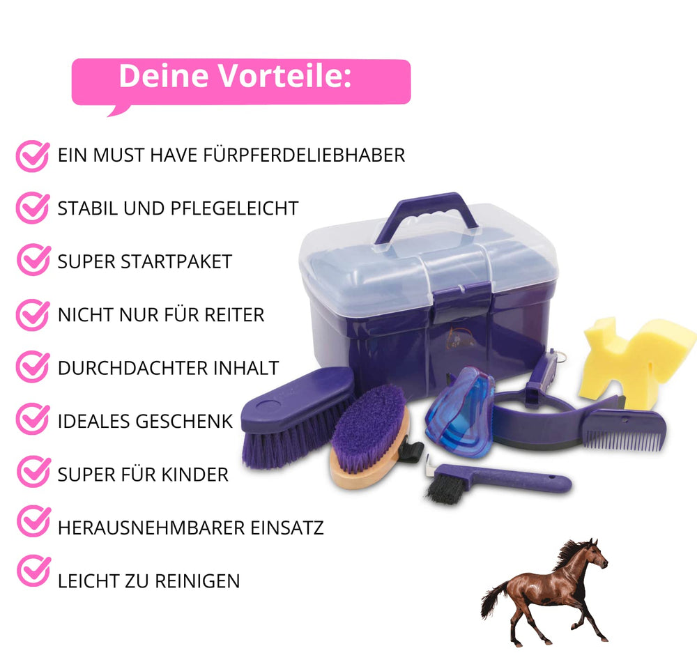 AMKA Pferde Putzbox Putzkasten Putzkoffer gefüllt für Kinder 7 teilig (lila), lila
