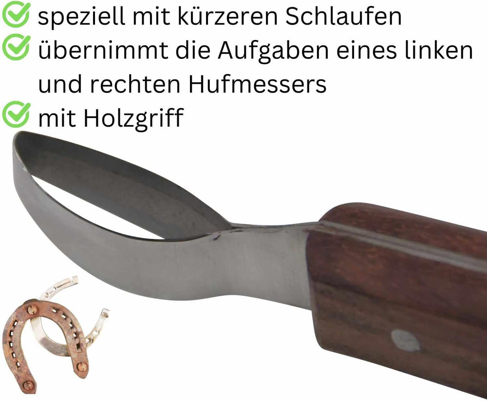AMKA PRO Schlaufen Hufmesser Klauenmesser Rinnmesser Carbon Stahl anatmomischer Holzgriff spezielle