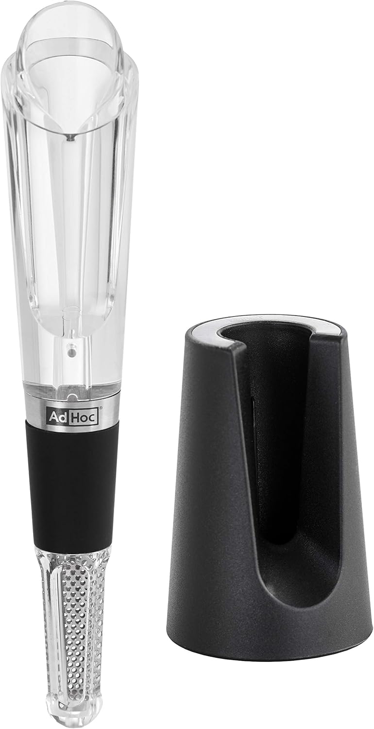AdHoc VA10 Dekantierausgiesser, Weinbelüfter Vine mit Abtropfständer, Edelstahl/Kunststoff/Silikon