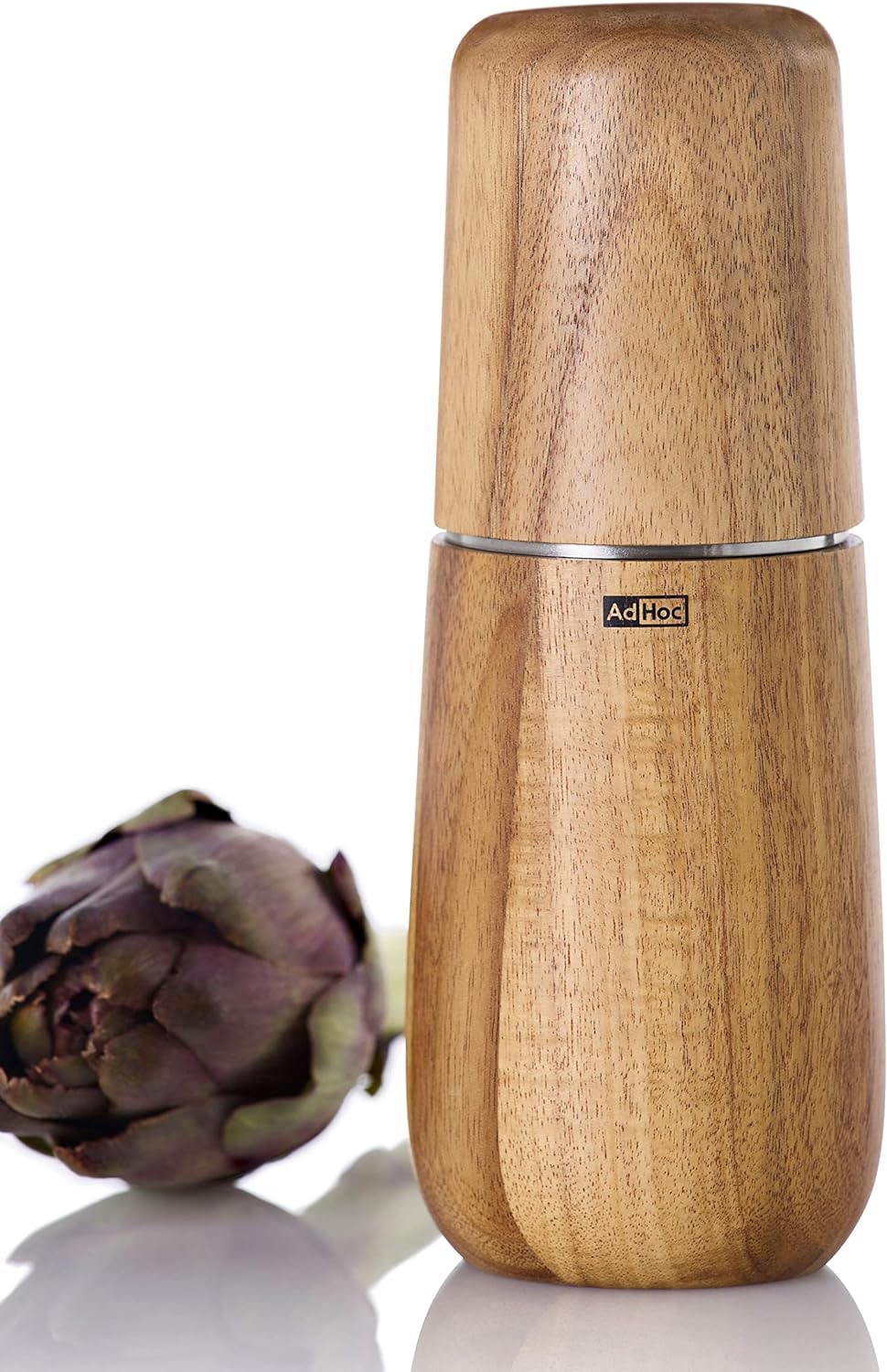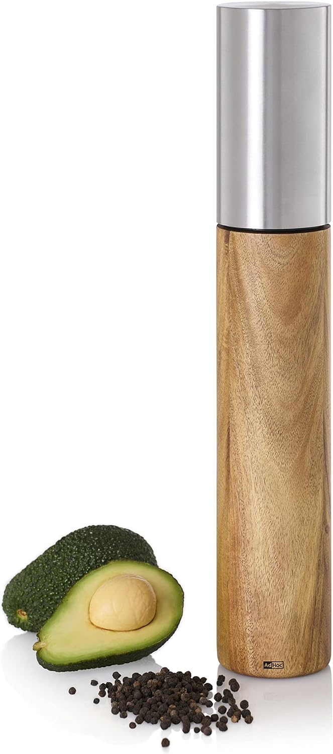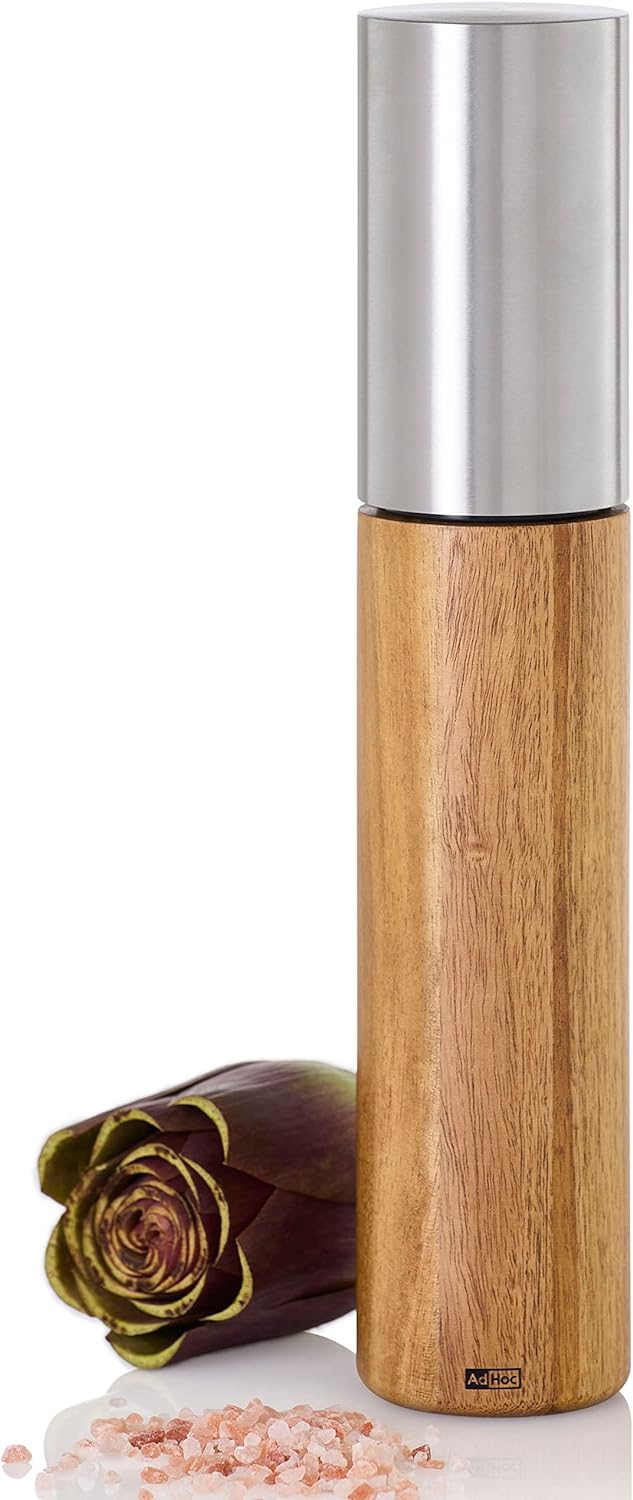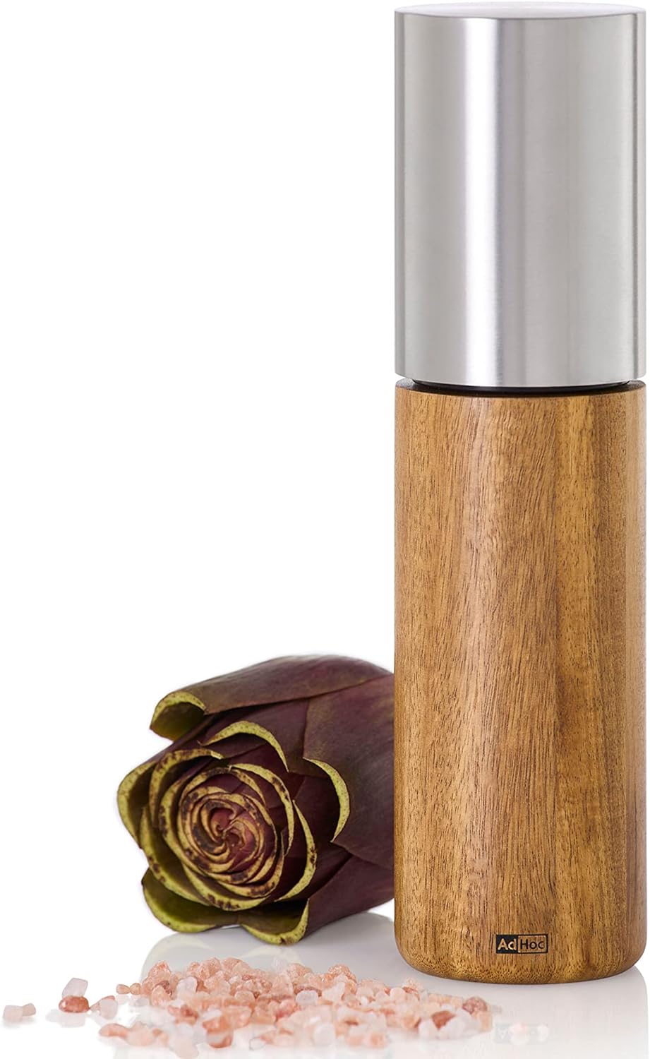 AdHoc MP822 Pfeffer- | Salzmühle Ikon, Keramik Mahlwerk CeraCut®, Akazienholz|Edelstahl 22 CM, 22 CM