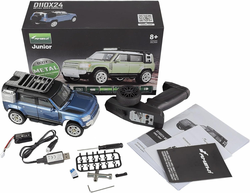 Amewi D110X24 Metall Scale RC Crawler ferngesteuertes Auto 4WD 1:24 RTR blau, Blau