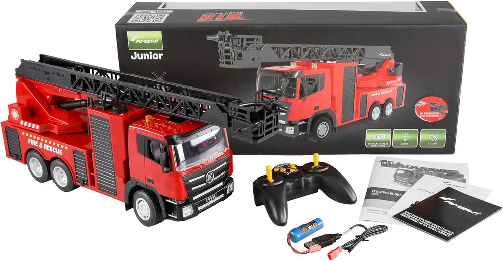 Amewi Feuerwehr Drehleiterfahrzeug 1:18 RTR ferngesteuert RC Kinder 8 Jahre, Rot