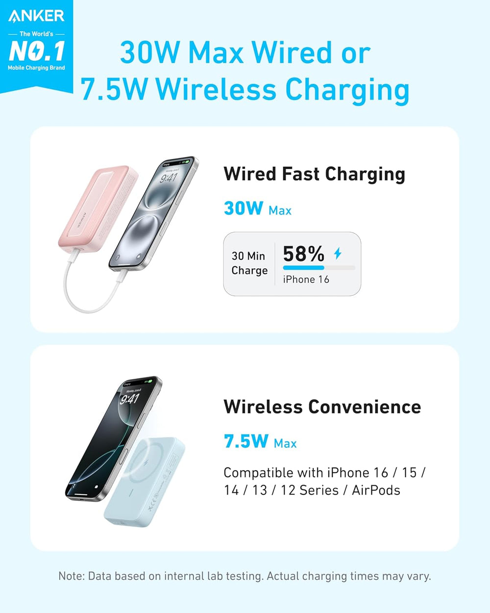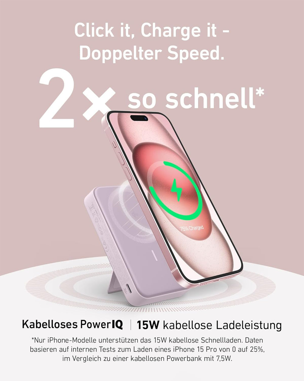 Anker Magnetische Powerbank, kompaktes 10.000mAh Ladegerät mit 30W Max. Schnellladen, kabellos und p