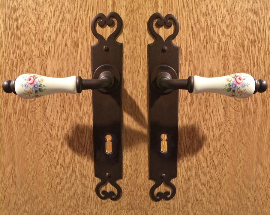Antikas - Türklinken Garnitur mit Porzellangriffen -Bella Siena antico- Streublumenmuster