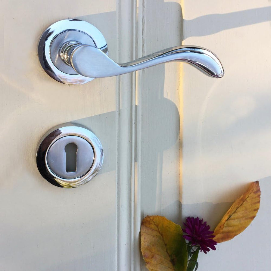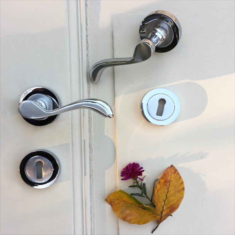 Antikas - Türknauf mit Sicherheitsrosette -Chrom-matt Knauf Haustür Qualität hervorragend!