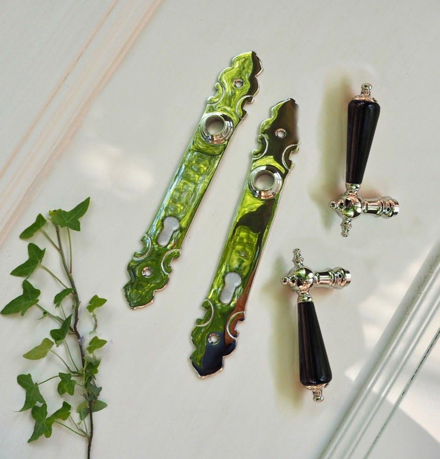 Antikas - Top - Chrom Türklinken Garnitur - sehr schicke Design-Garnitur mit Rosetten