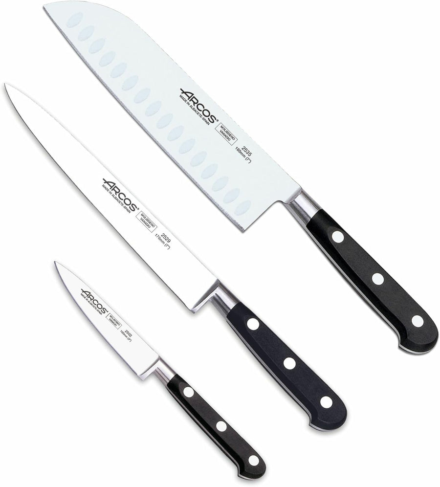 Arcos Niza - Küchenmesser-Set 3 Stück (Gemüse + Küche + Koch) - Metallisches Gold Estandar Metallic-