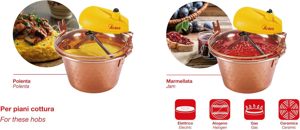 Ardes, Kupfertopf, Durchmesser 24 cm, Marmeladen-Polenta-Mixer, mit Elektromotor, Bajonettverschluss