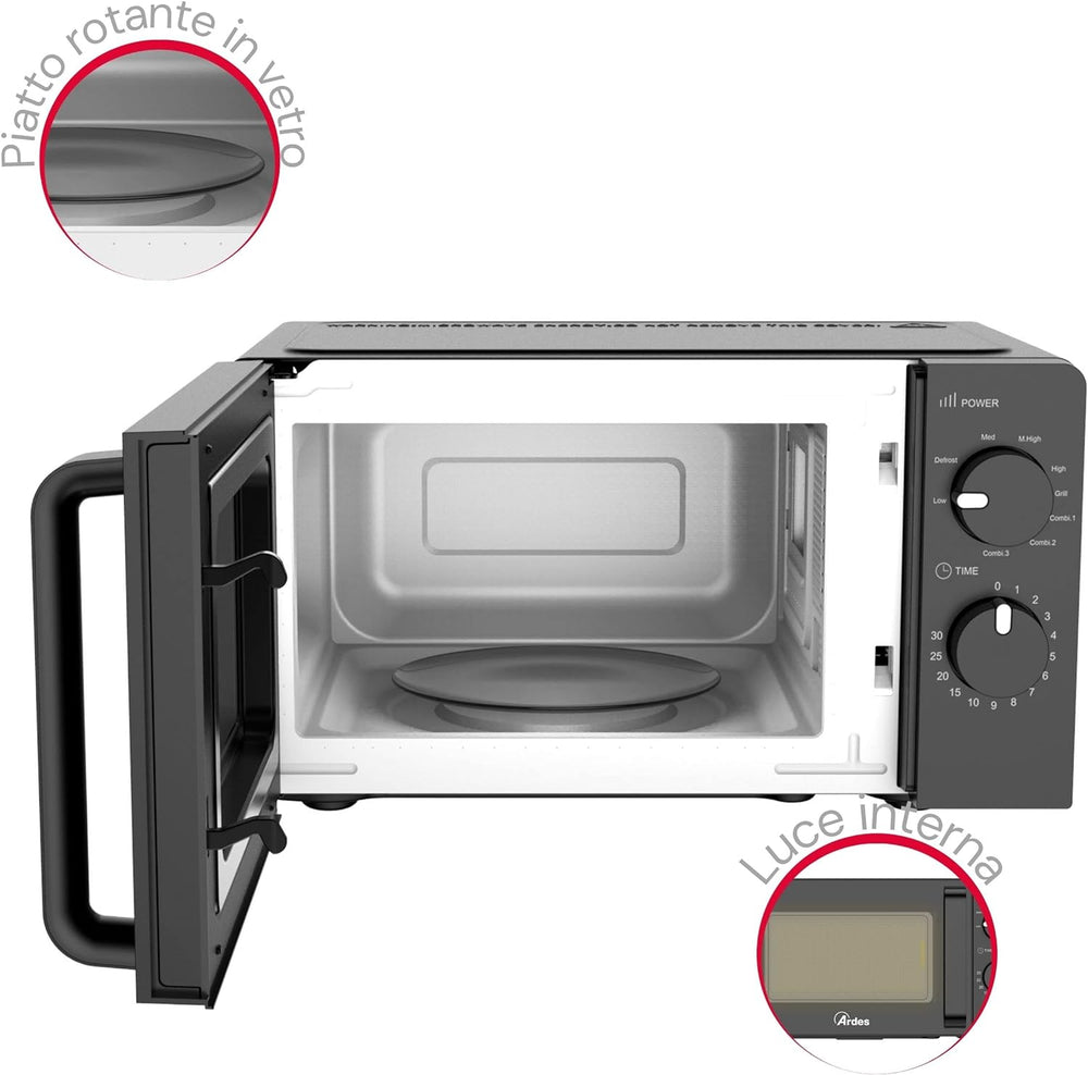ARDES - Mikrowellenherd 20 Liter Kleiner Kombiofen Mikrowelle und Grill mit 5 Leistungsstufen und 9