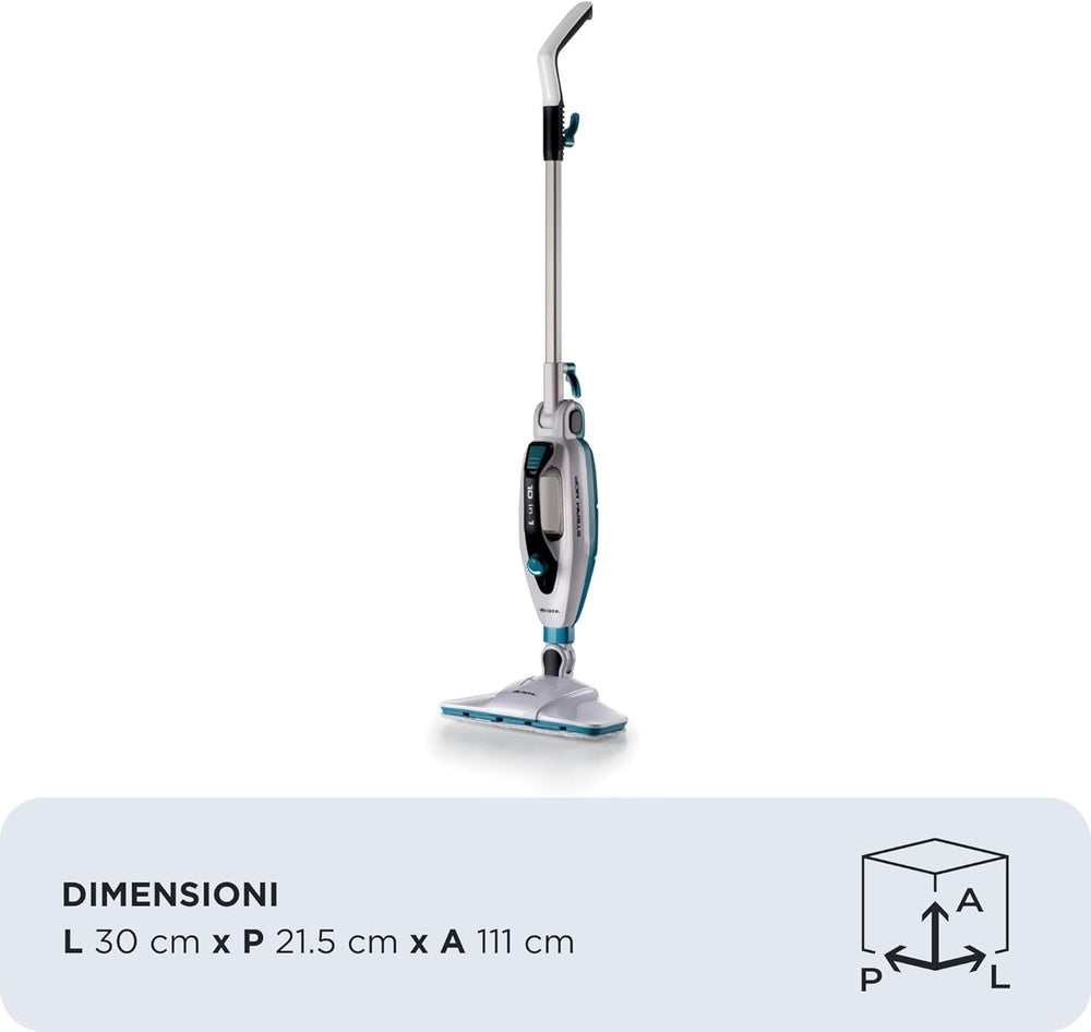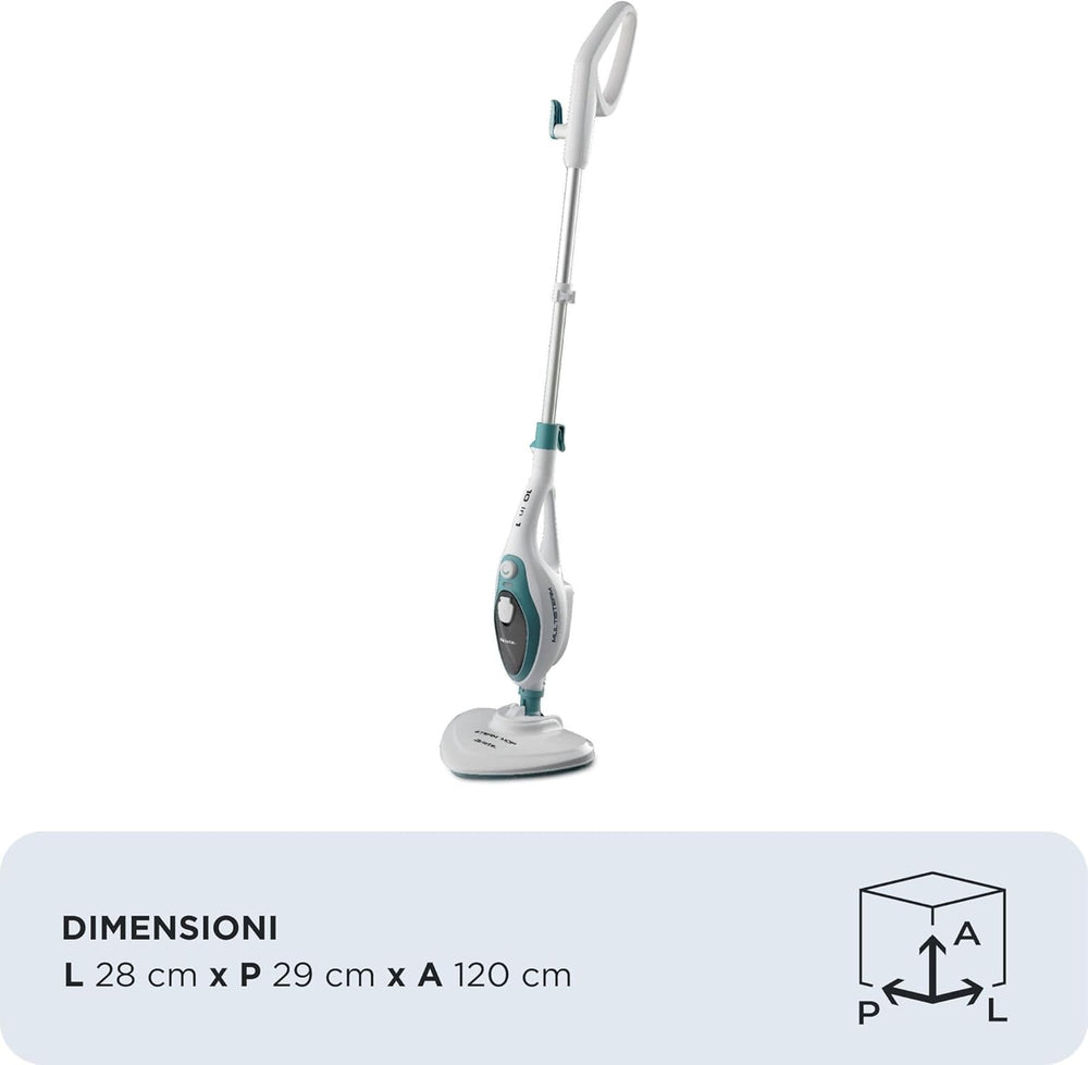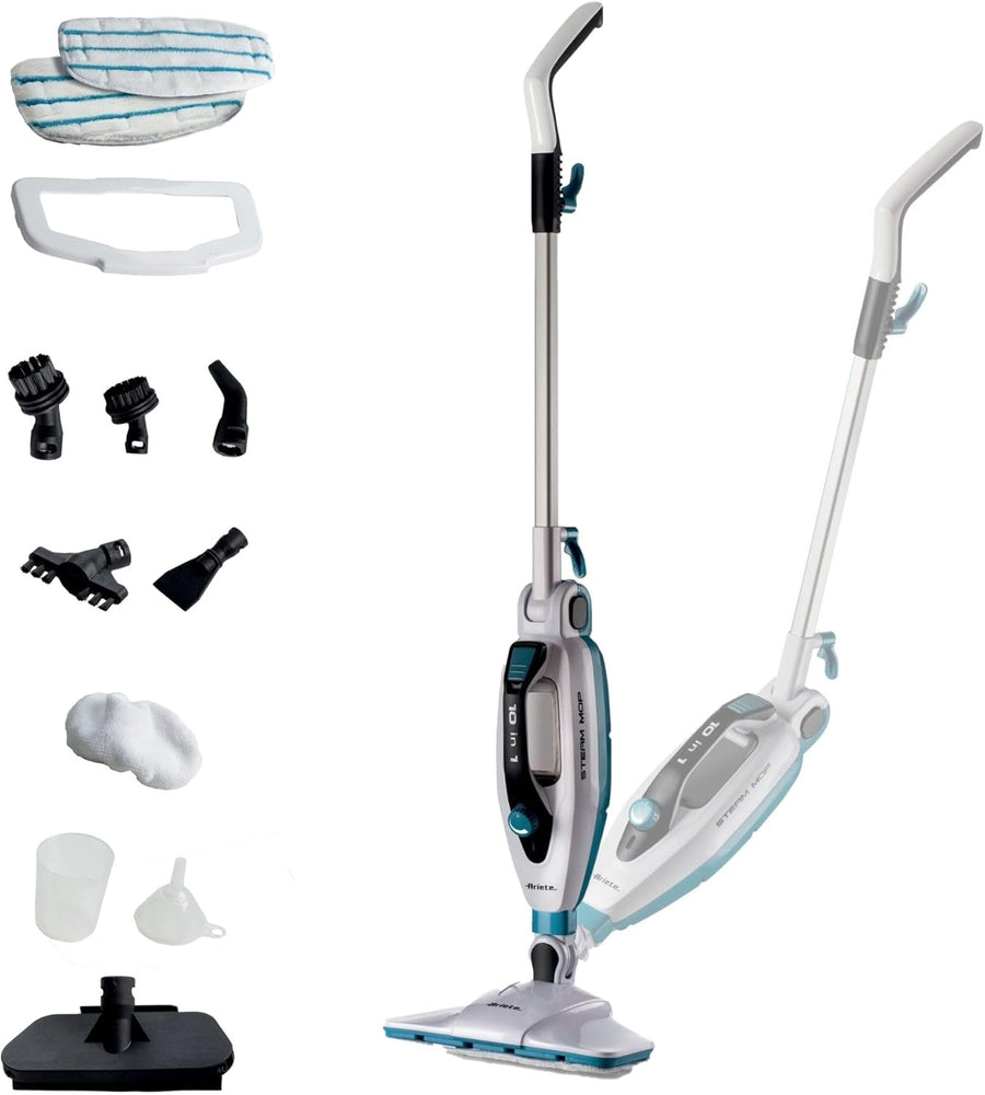 Ariete 4169 Steam Mop 10 in 1, Dampfreiniger, 18 Minuten Arbeitszeit, Klappbarer Stiel, Weiss und Bl