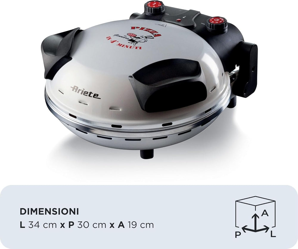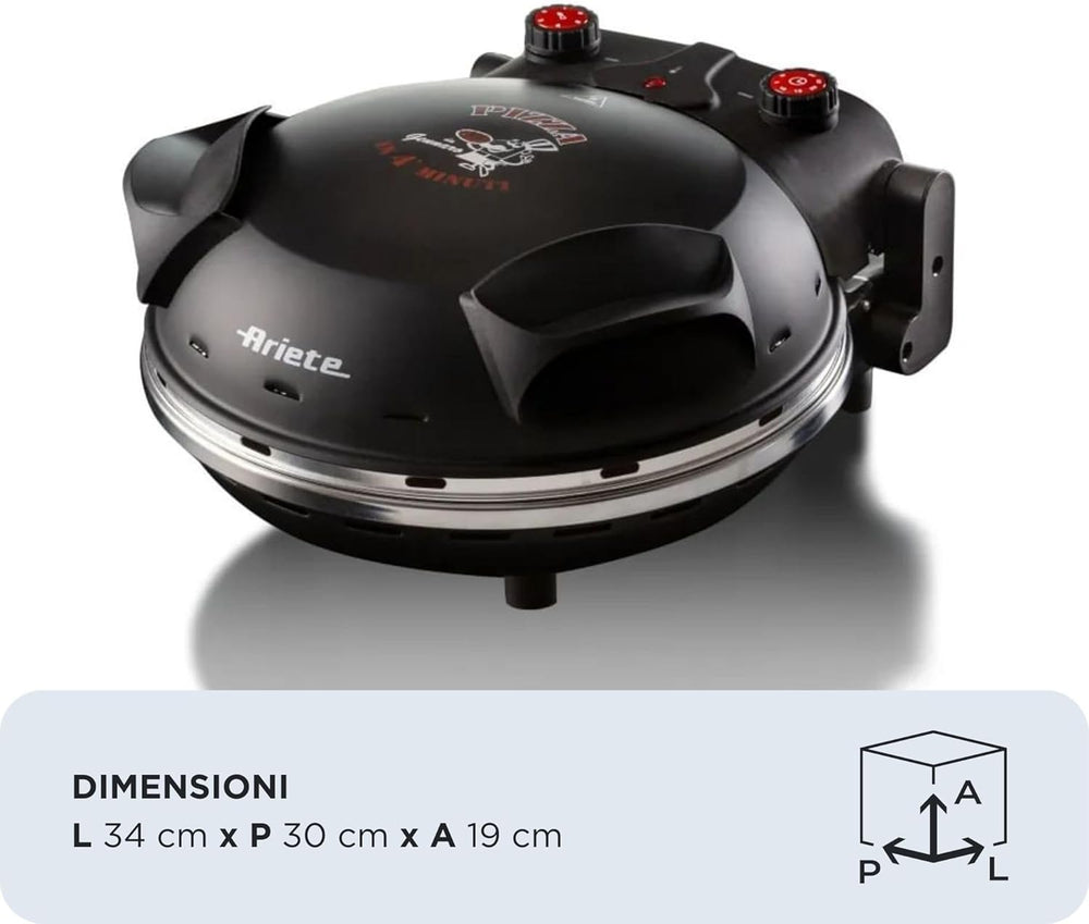 Ariete 919 Pizza in 4 Minuten, Pizzaofen, 400 Grad, backt in 4 Minuten, Schamottstein 32 cm Durchmes
