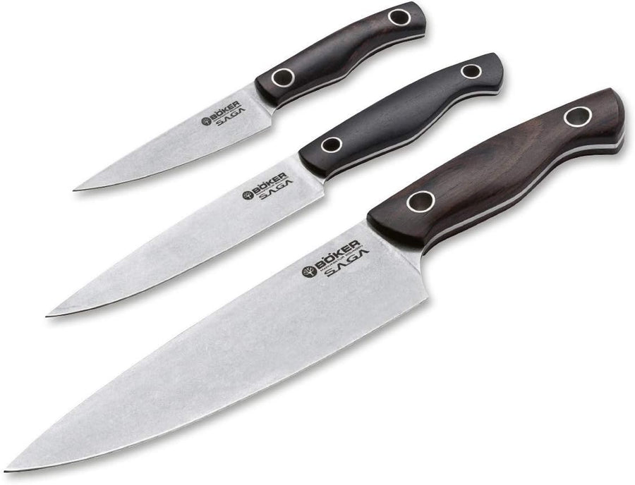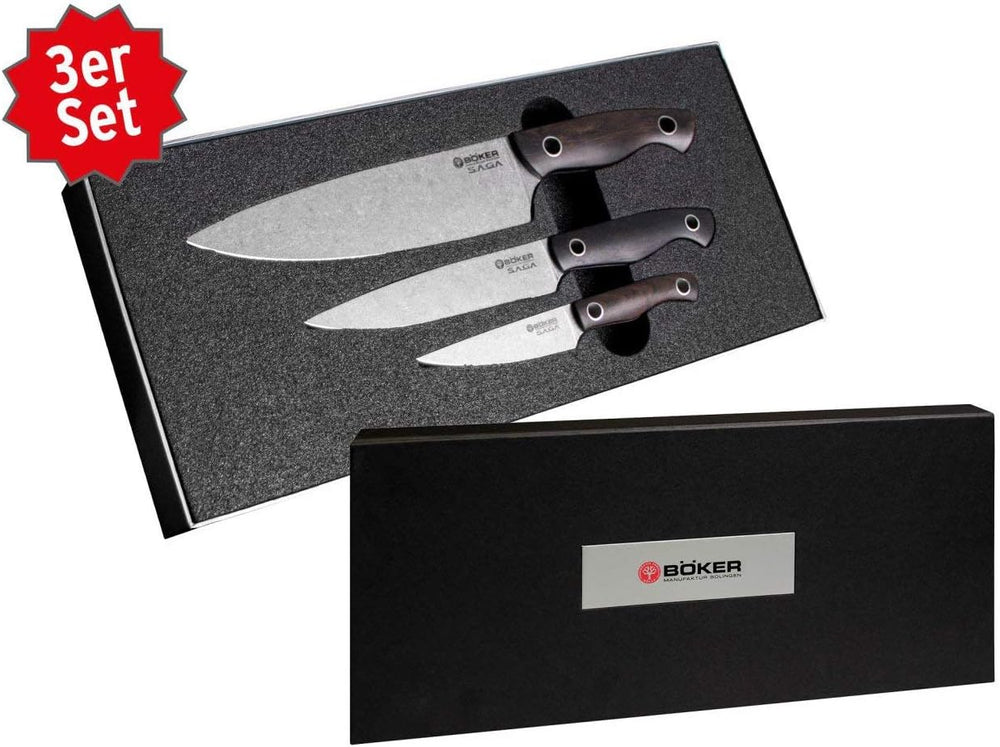 Böker Saga Grenadill Messerset Kochmesser, Holz, Braun, 35 x 15 x 4 cm, 3-Einheiten, Messerset