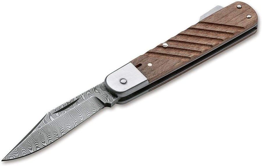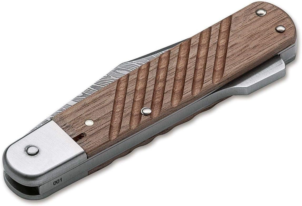 Böker Manufaktur Solingen 98k-Damast Taschenmesser Damast/Walnussholz Braun, Klingenlänge: 8,40 cm,