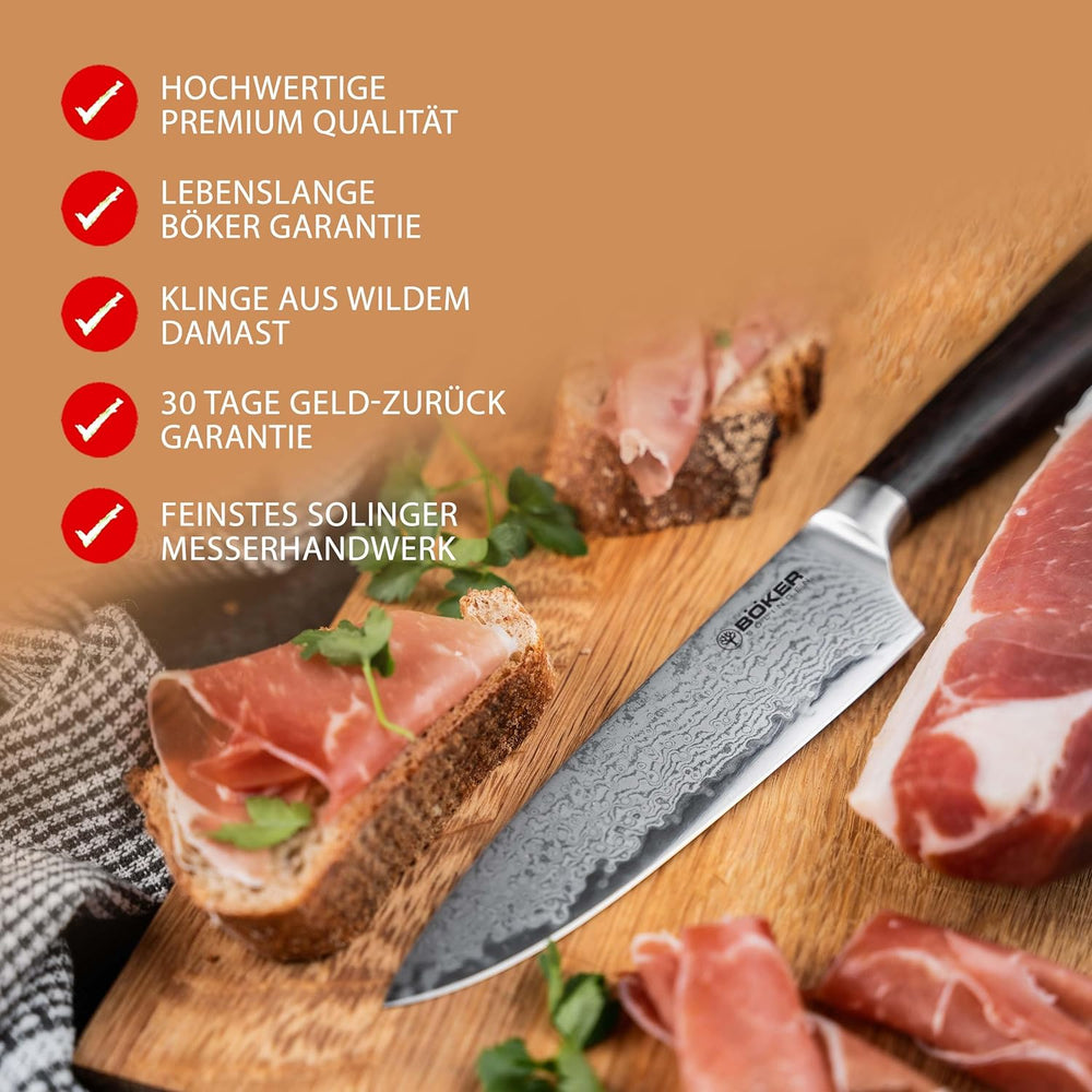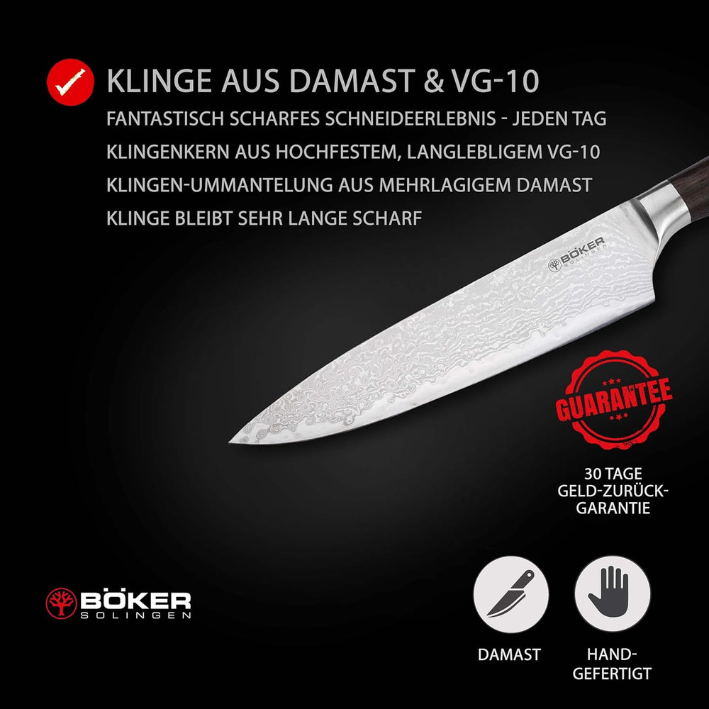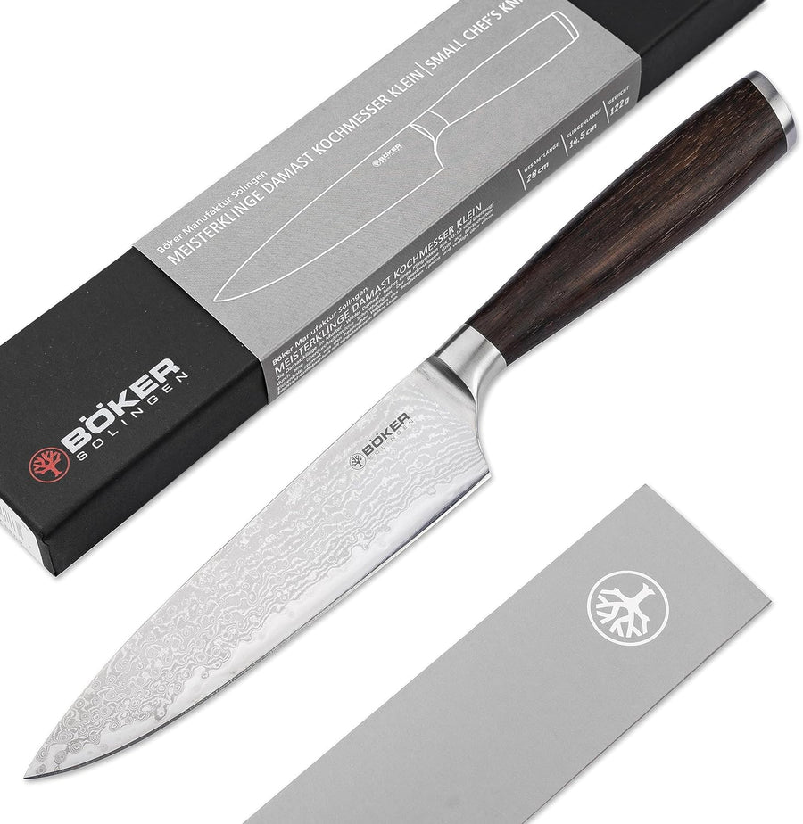 Böker SOLINGEN® Meisterklinge Damast Kochmesser Klein - Profi Küchenmesser mit Holz-Griff aus Räuche