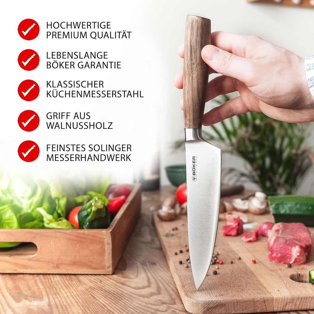 Böker Manufaktur Solingen Manufaktur Heritage Chefmesser Walnussholz/Edelstahl Braun-Silber, Klingen
