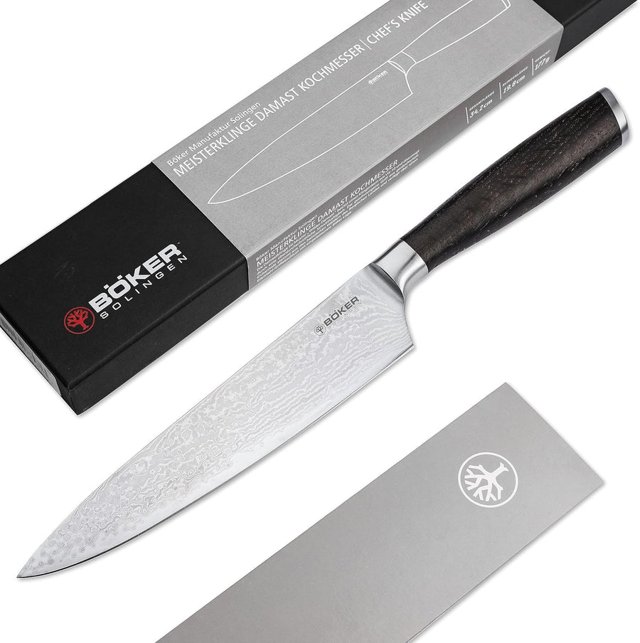 Böker SOLINGEN® Meisterklinge Damast Kochmesser mit Holz-Griff aus Räucher-Eiche - Profi Chef-Messer