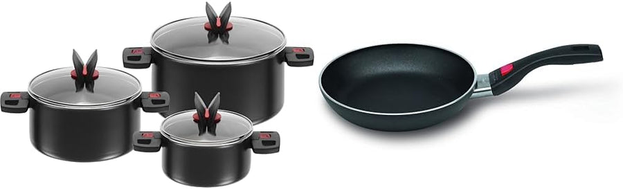 BALLARINI Topfset, 3-tlg., Inkl. 3 Glasdeckel, Antihaftbeschichtet, schwarz & Click & Cook Pfanne 24