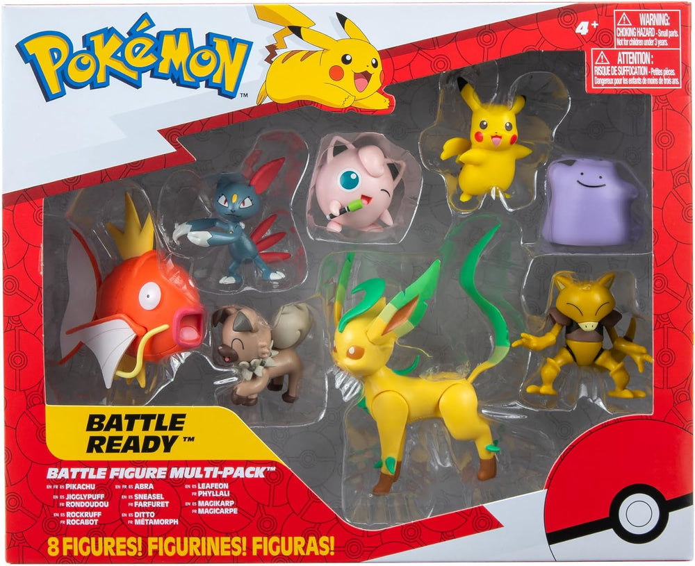 BANDAI - Pokémon – 8 Figuren Battle – Pikachu, Rondoudou (Jigglypuff), Rocabot (Rockruff), Abra, Far