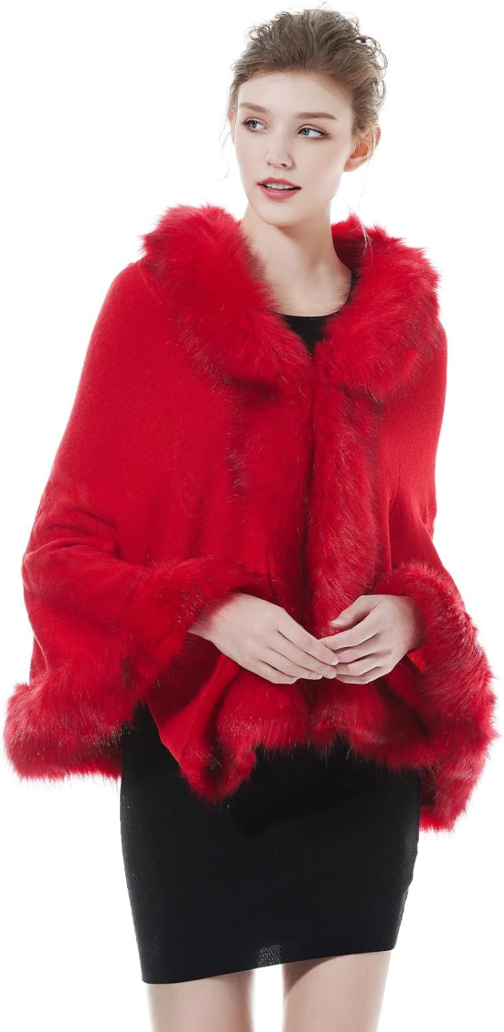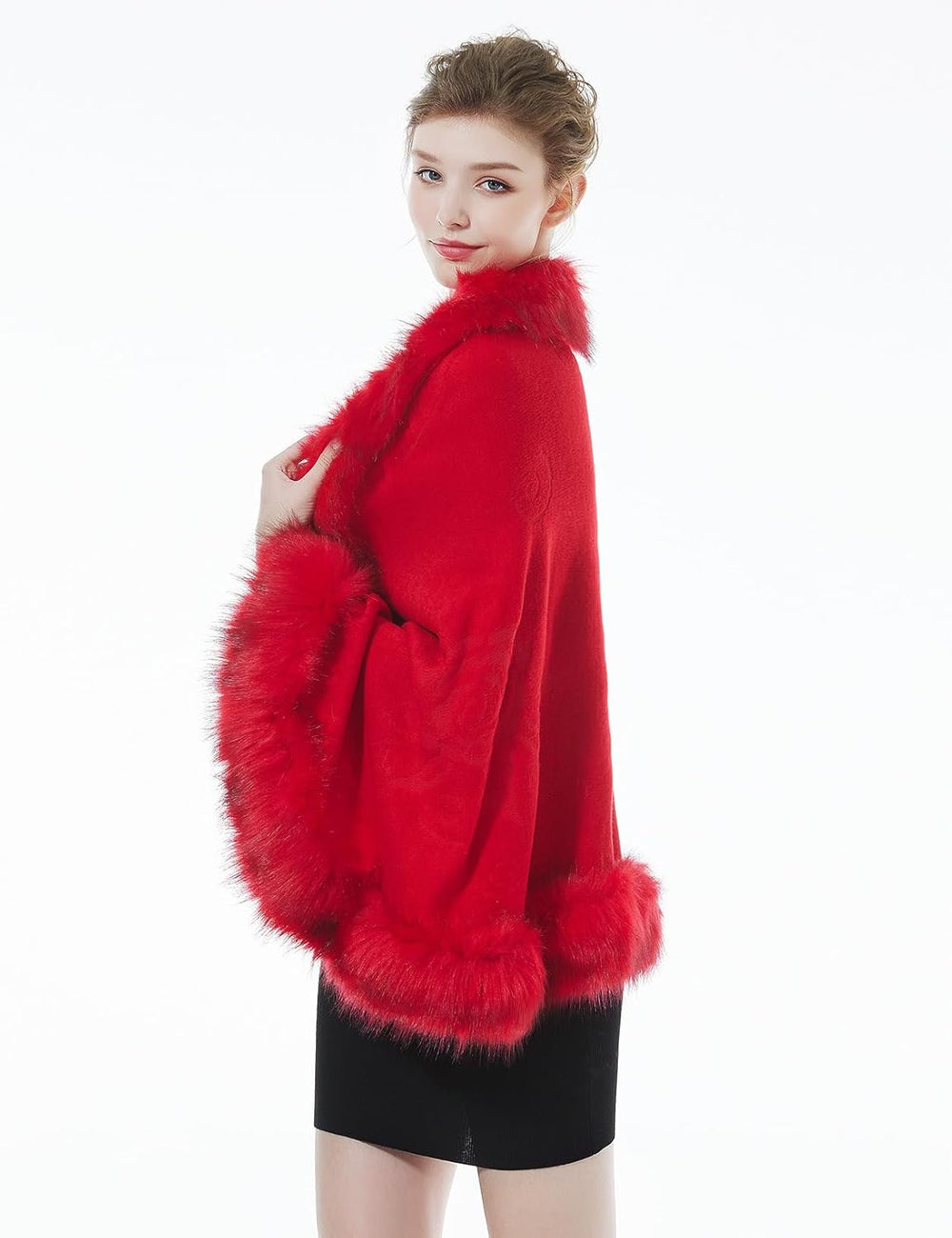 BEAUTELICATE Kunstpelz Stola Schal Damen Strick Bolero Poncho Cape für Hochzeit Abendkleid Braut Fra