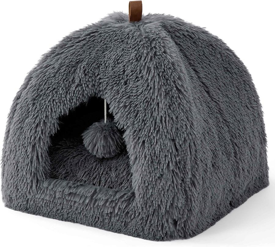 BEDSURE Katzenbett grosse Katzen Katzenhöhle- 40x40x40 cm Katzenhaus Indoor mit abnehmbarem Sherpa K