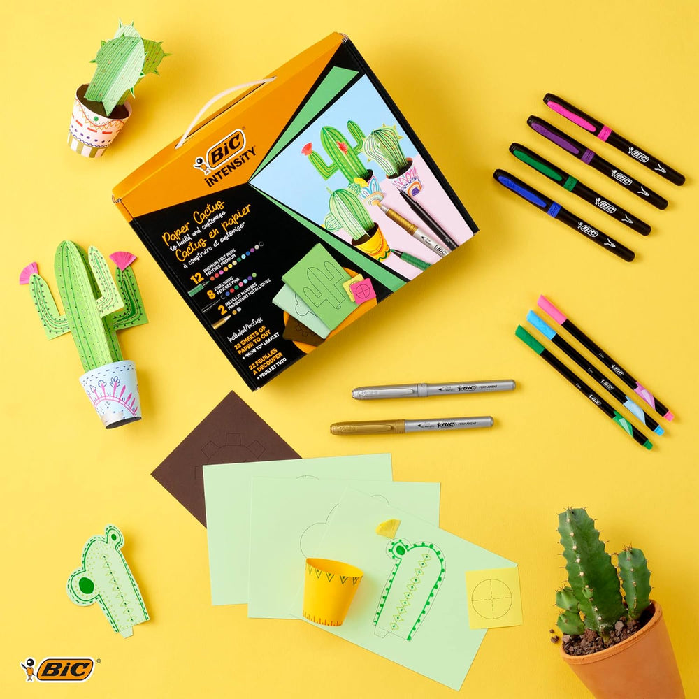 BIC Intensity Stifte Set Kaktus: Bastel Set inkl. 12 Filzstifte, 8 Fineliner, 2 Metallic Marker und