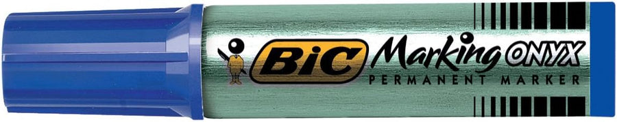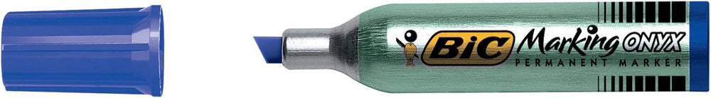 BIC Marking Onyx Permanent Marker, Wasserfester Stift, in Blau, 12er Pack, mit Keilspitze, Strichstä