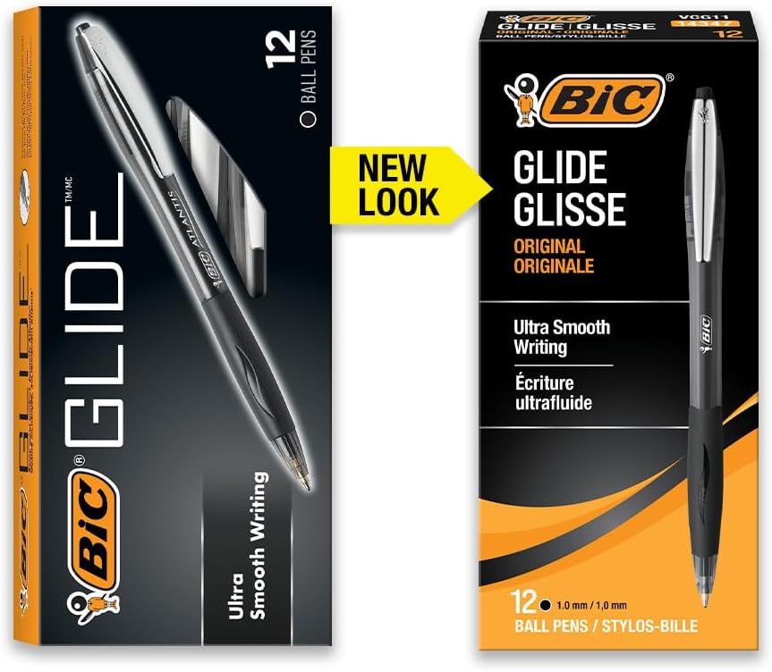 BIC Glide Druckkugelschreiber, mittlere Spitze (1,0 mm), schwarz, bequemer Gummigriff zum Schreiben,