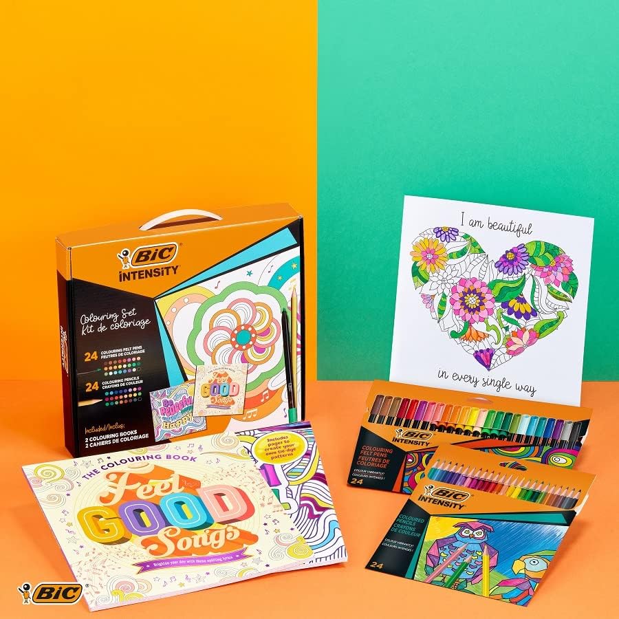 BIC Intensity Stifte Set Be Peaceful, Kreativ Set für Erwachsene und Teenager: 24 Buntstifte & 24 Fi