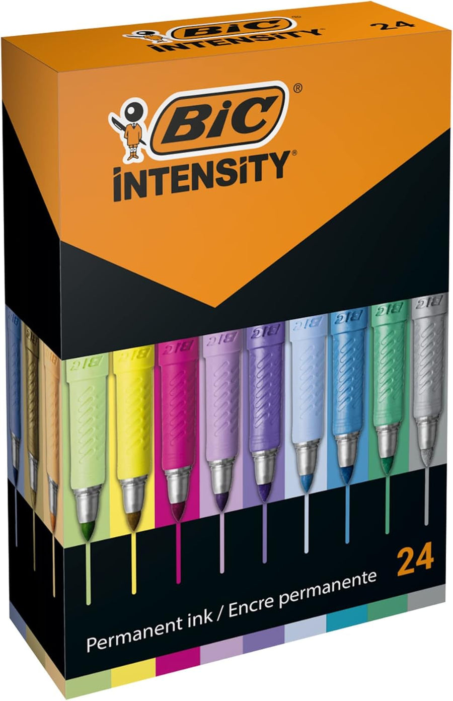 BIC Intensity Pastell Marker, in 24 verschiedenen Metallic- und Pastellfarben, geruchsarm, schnell t