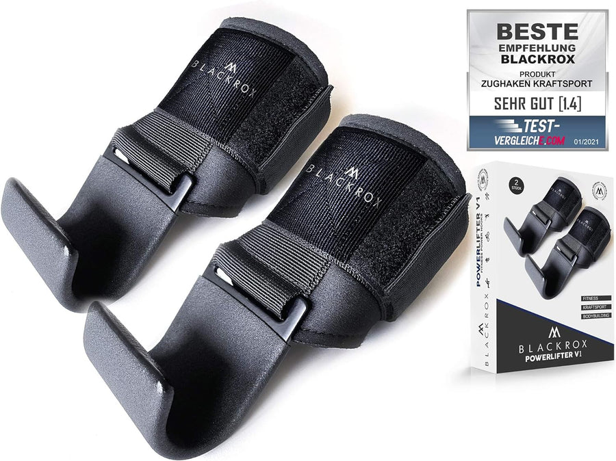 BLACKROX Zughaken Krafttraining Powerlifter V1 Vergleichssieger Zughilfen Fitness Bodybuilding 2 Stü