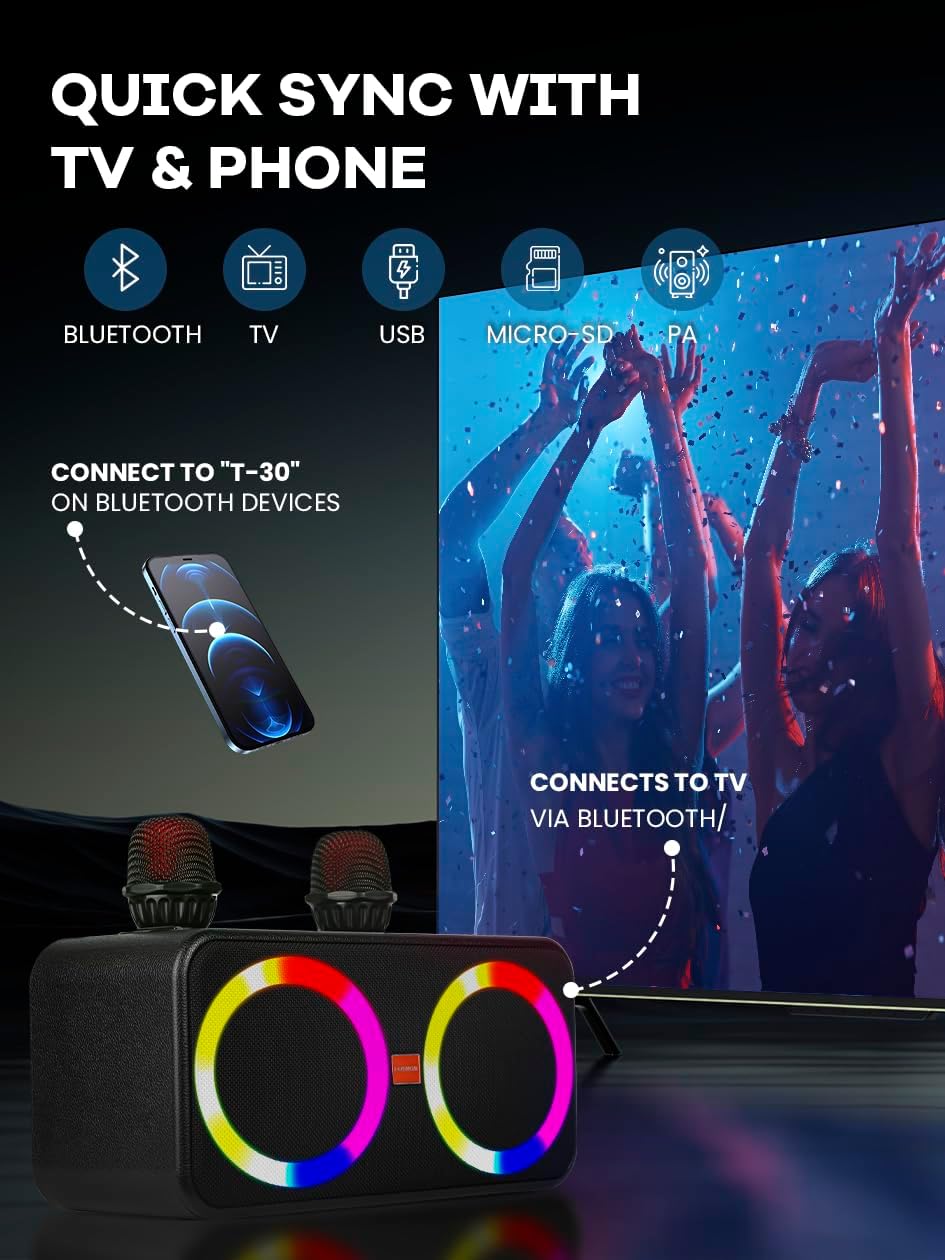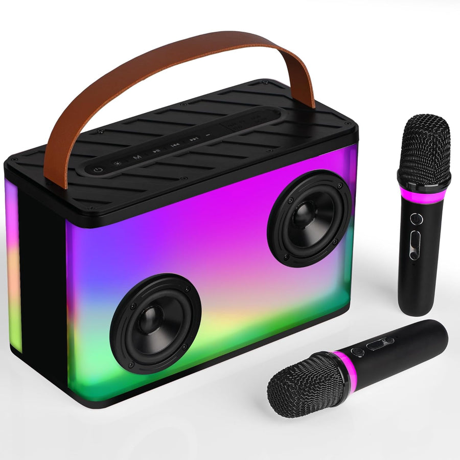 BONAOK Tragbare Karaoke-Maschine, Bluetooth-Karaoke-System mit 2 Karaoke Mikrofonen, Wiederaufladbar