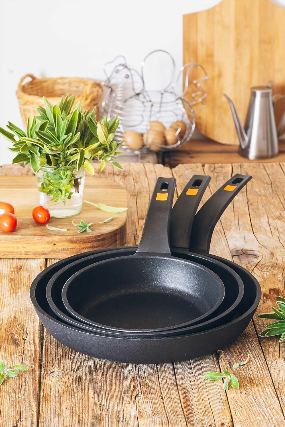 Bra Efficient Poêle en aluminium inoxydable avec 1 poignée, orange 26 cm 26 cm, 26 cm