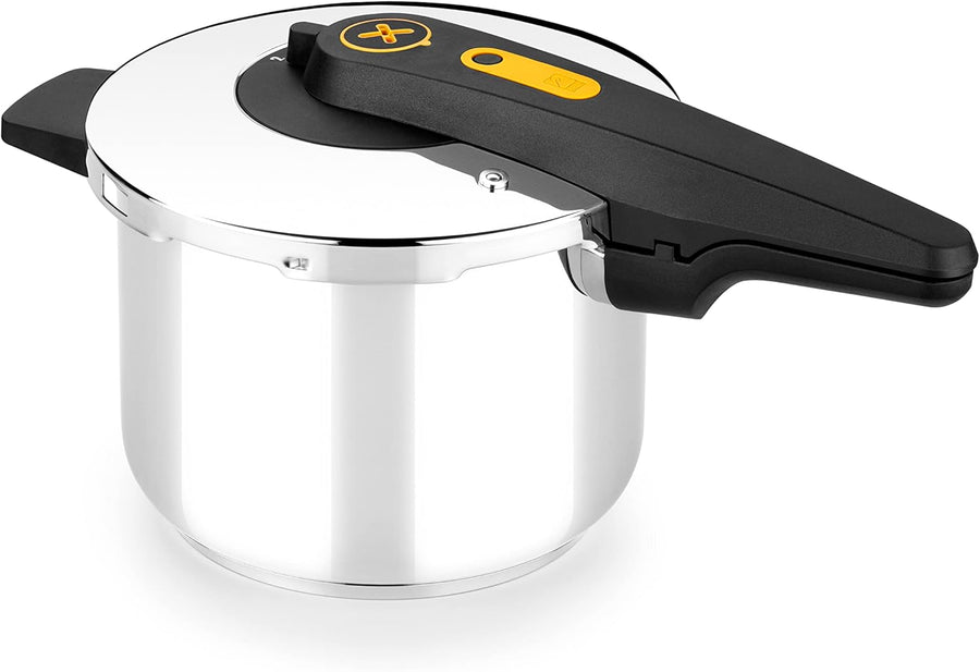 BRA Excellent | 6-Liter-Schnellkochtopf mit einfachem Öffnen, aus Edelstahl 18/10, mit 2 Kochprogram