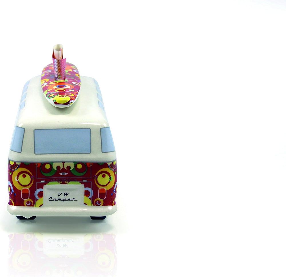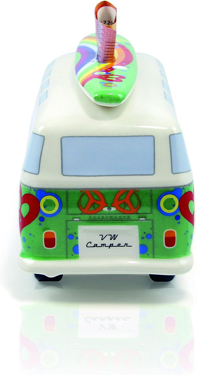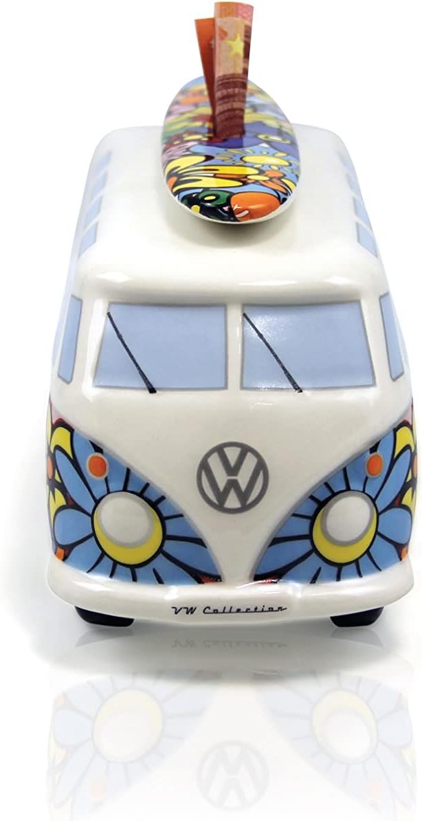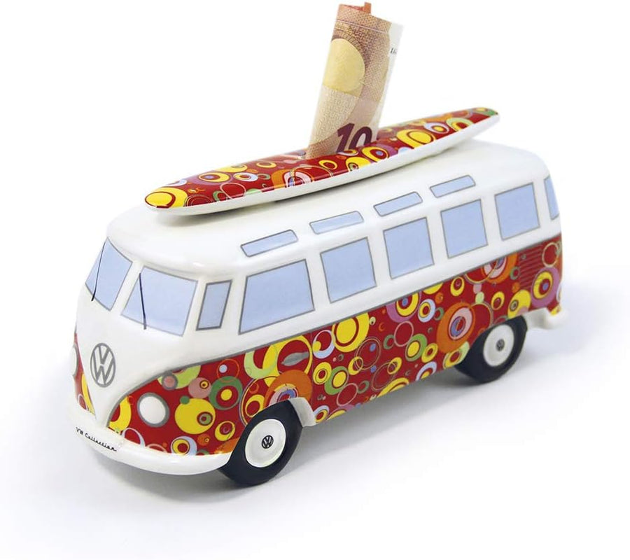 BRISA VW Collection - Volkswagen Spar-Büchse-Schwein-Dose mit Surfbrett im T1 Bulli Bus Samba Design