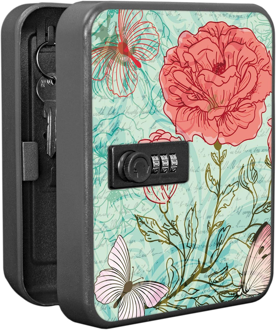 banjado® Burg-Wächter® abschliessbarer Schlüsselkasten mit Motiv Blumenstrauss für 20 Schlüssel - Sc