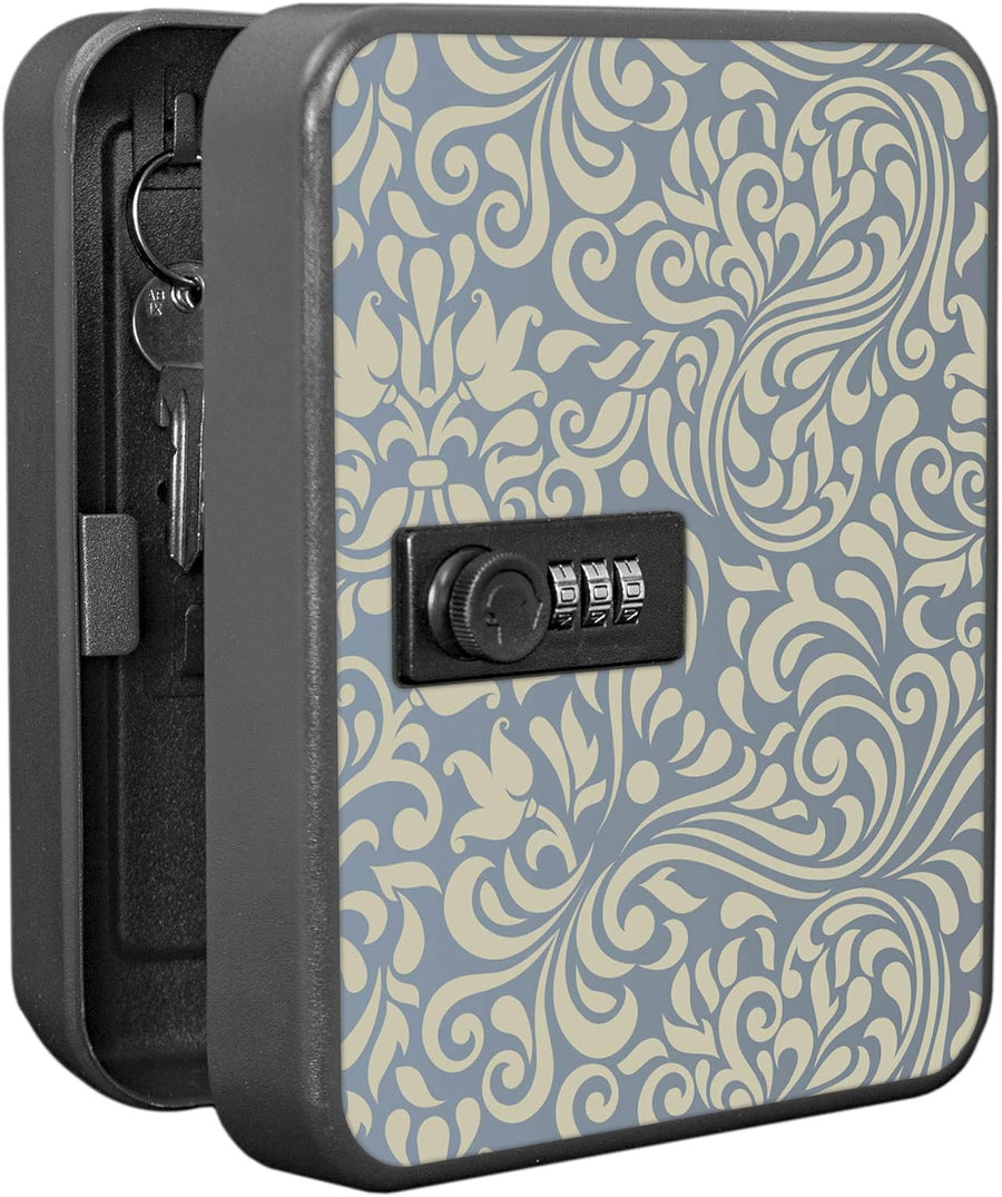 banjado® Burg-Wächter® abschliessbarer Schlüsselkasten mit Motiv Blaues Ornament für 20 Schlüssel -