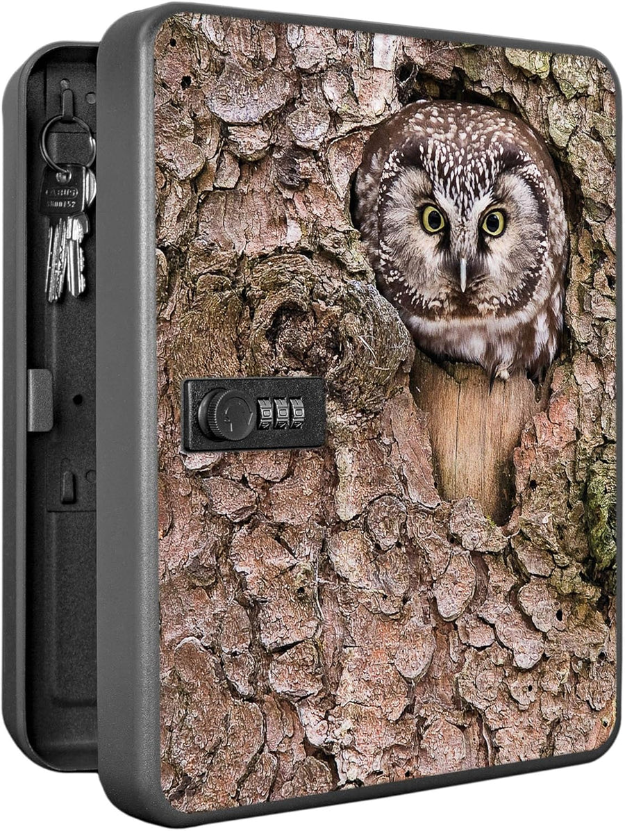 banjado® Burg-Wächter® abschliessbarer Schlüsselkasten mit Motiv Eule für 36 Schlüssel - Schlüsselka