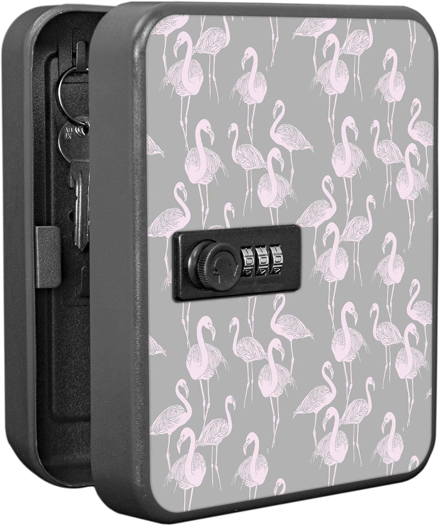 banjado® Burg-Wächter® abschliessbarer Schlüsselkasten mit Motiv Flamingos Blass für 20 Schlüssel -