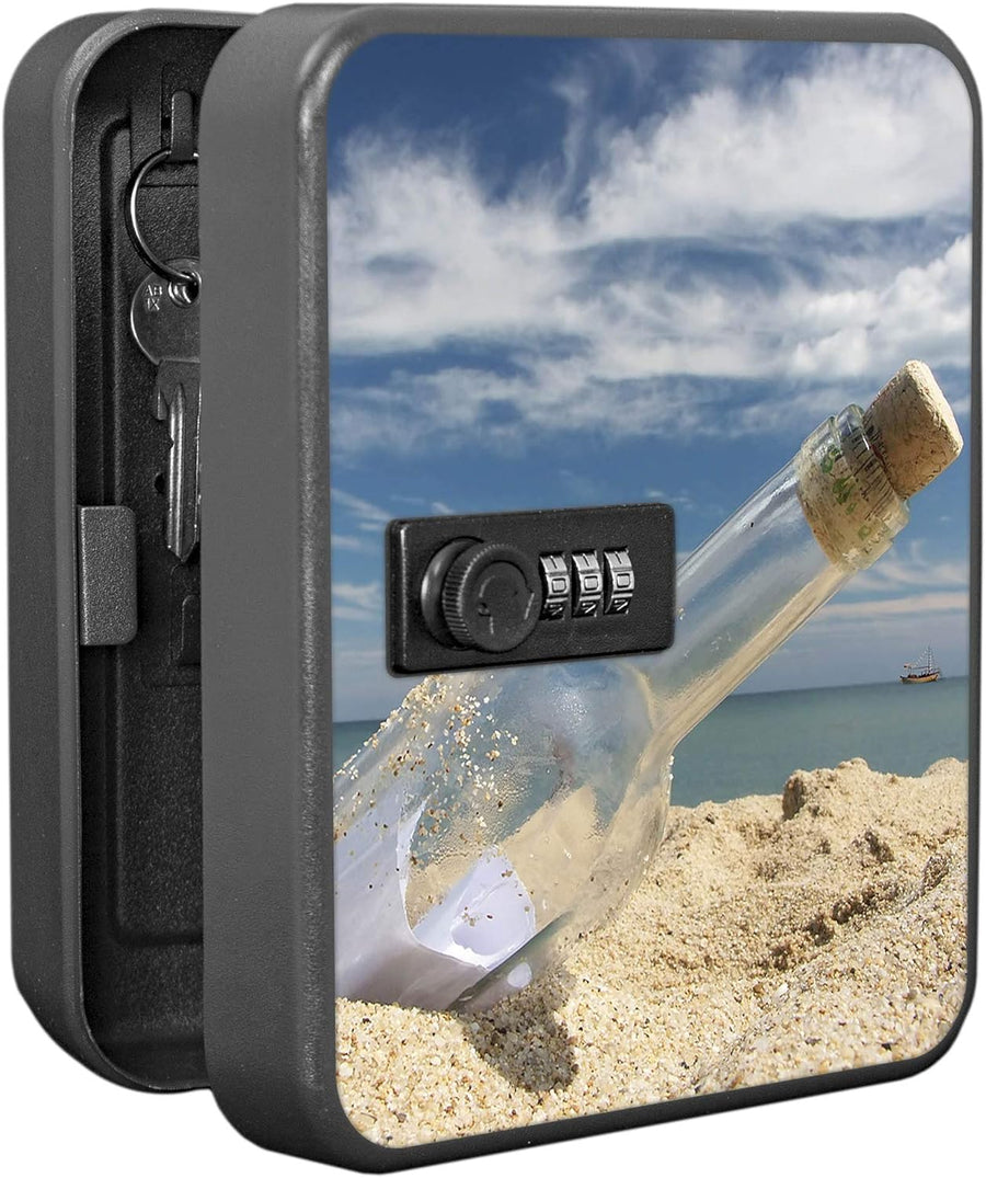 banjado® Burg-Wächter® abschliessbarer Schlüsselkasten mit Motiv Flaschenpost für 20 Schlüssel - Sch
