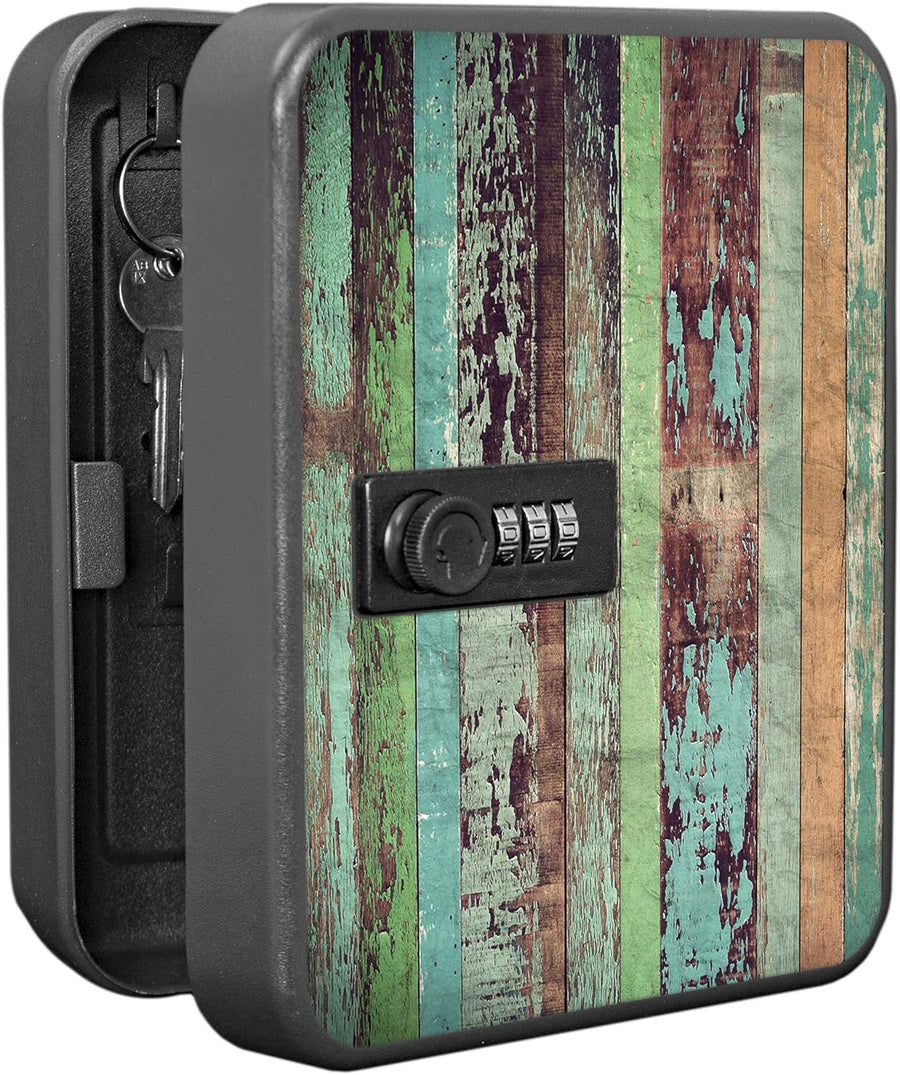 banjado® Burg-Wächter® abschliessbarer Schlüsselkasten mit Motiv Bunte Bretterwand für 20 Schlüssel