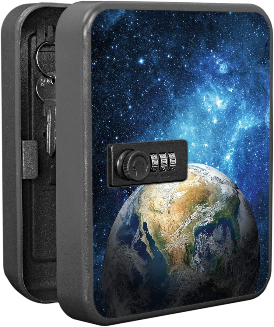 banjado® Burg-Wächter® abschliessbarer Schlüsselkasten mit Motiv Erdkugel für 20 Schlüssel - Schlüss