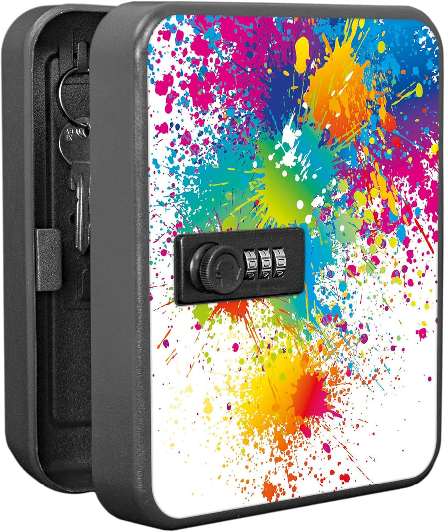 banjado® Burg-Wächter® abschliessbarer Schlüsselkasten mit Motiv Farbspritzer für 20 Schlüssel - Sch