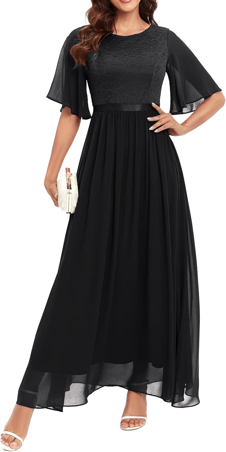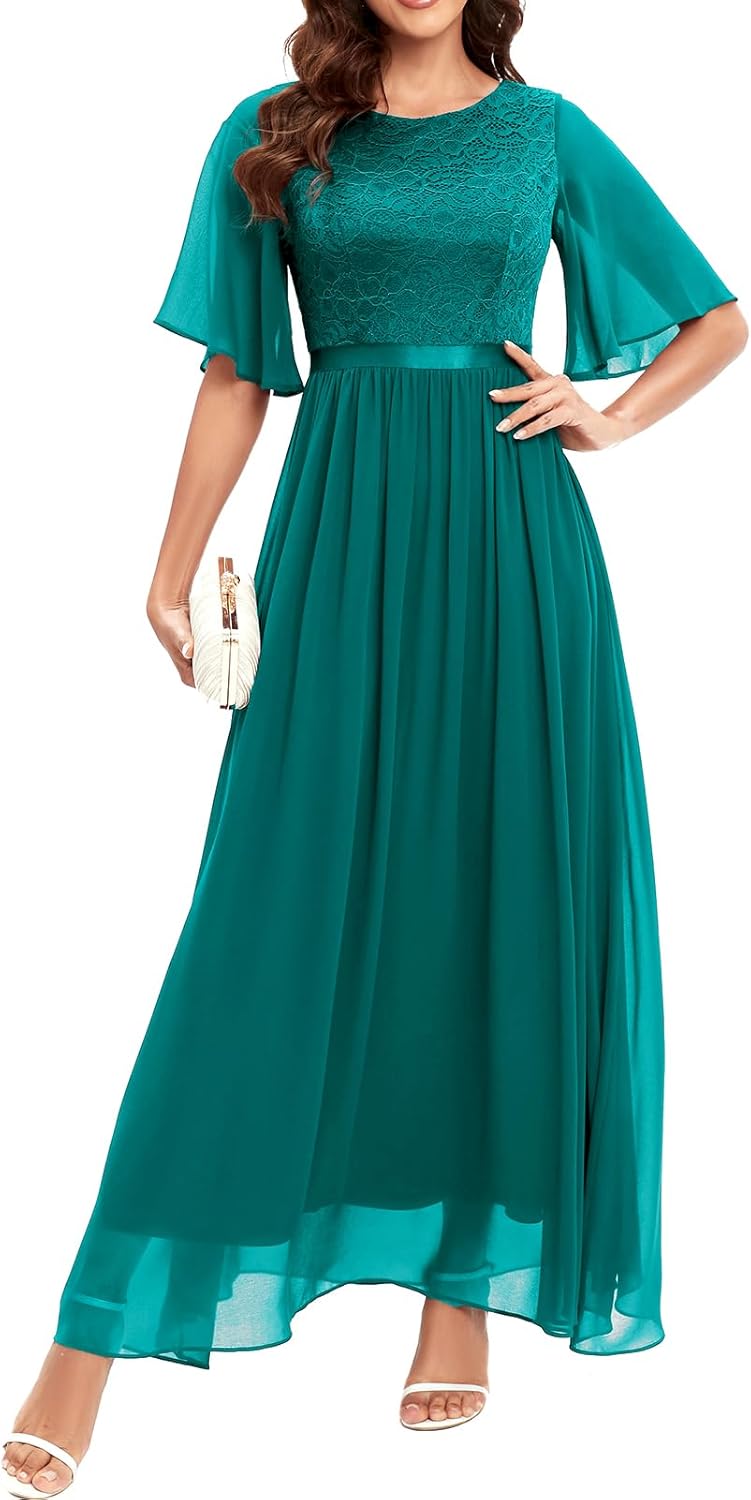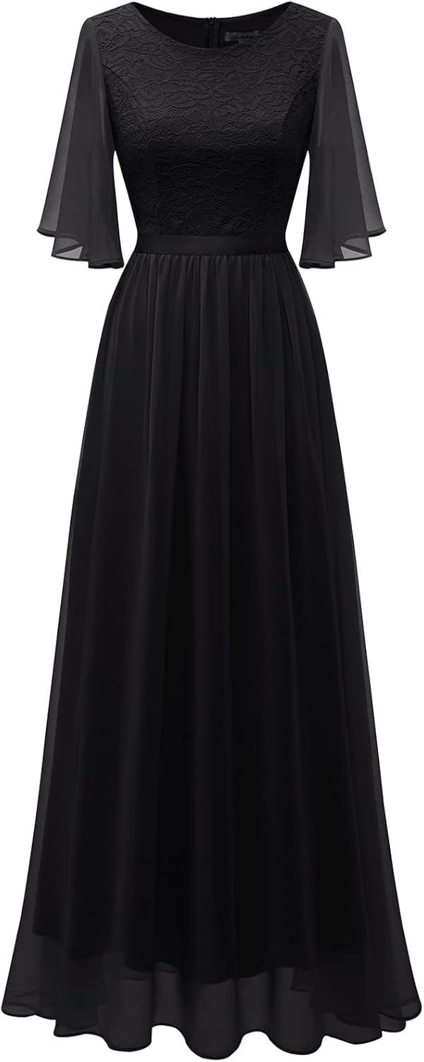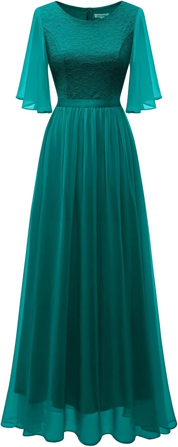 Bbonlinedress Abendkleider elegant für Hochzeit Spitzen Chiffon Ärmel Kleid festliches Brautjunferkl