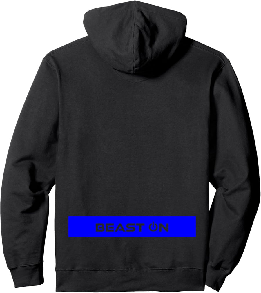 Beast ON Blau Rücken Druck Modernes Fitness Schlichtes Gym Pullover Hoodie
