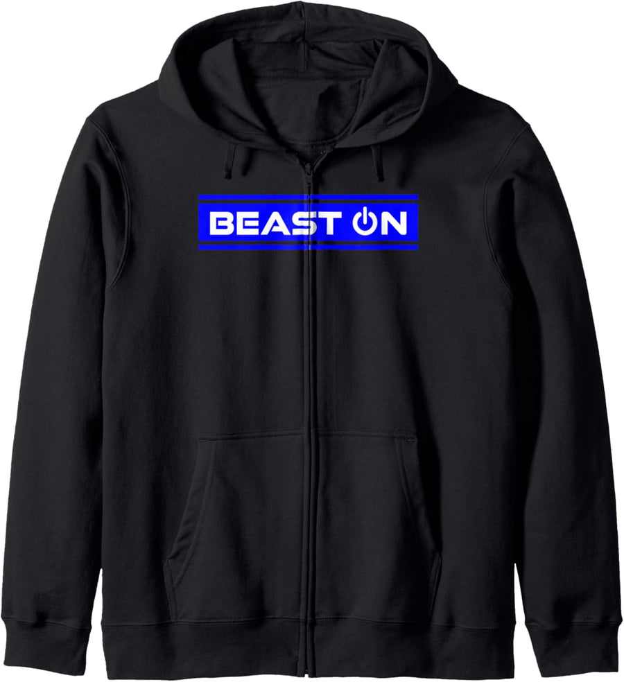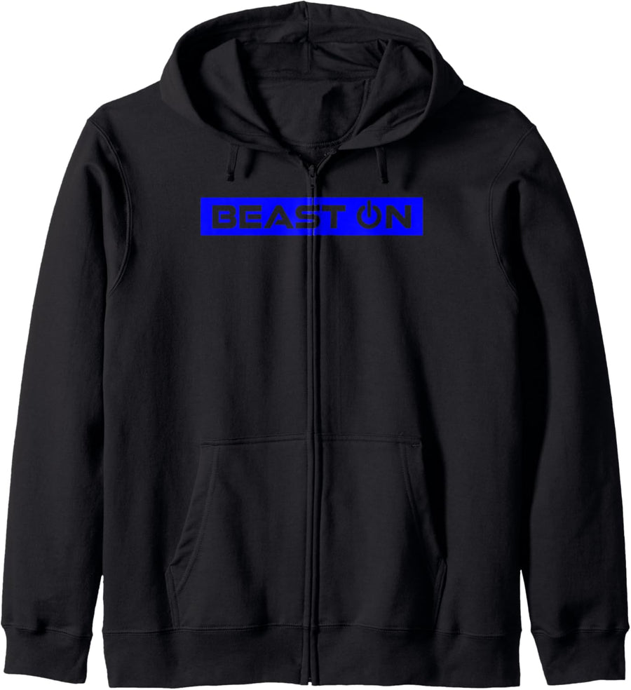 Beast ON Blau Rücken Druck Modernes Fitness Schlichtes Gym Kapuzenjacke